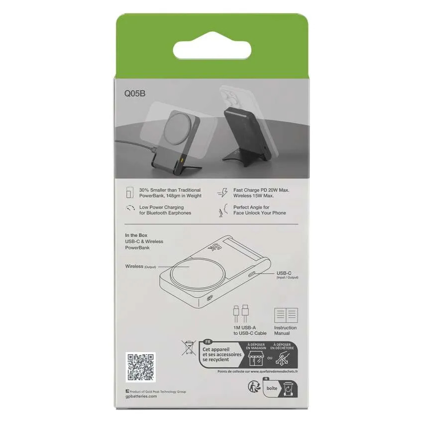GP Powerbank Q05B, 5000 mAh, 20 W+Wireless, Schwarz detaillierte Beschreibung