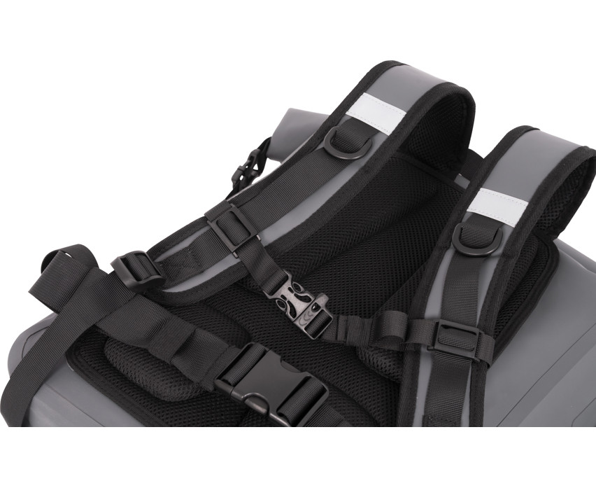 Der Rucksack besteht aus hochwertigem, laminiertem 500D-Netzmaterial, das extrem widerstandsfähig gegen Wasser, Abrieb und mechanische Einflüsse ist. Das aufrollbare, verschließbare Hauptfach garantiert absolute Wasserdichtigkeit, sodass die darin aufbewahrten Gegenstände auch bei Regen oder in nasser Umgebung trocken und geschützt bleiben. Die vordere Aufbewahrungstasche ist mit einem wasserdichten Reißverschluss versehen, der einen schnellen Zugriff auf kleinere Utensilien ermöglicht.