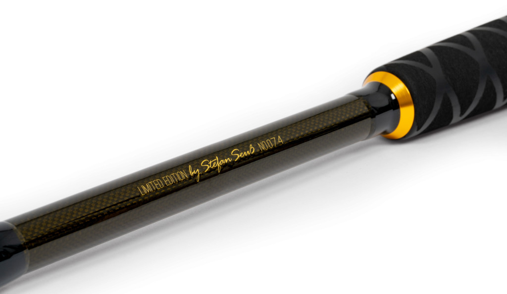 Der Rutengriff wurde im Zeichen der funktionalen Ästhetik gefertigt: Neben dem hochwertigen Korkgriff hilft ein spezieller EVA-Kampfgriff mit X-Wrap-Beschichtung bei der Griffigkeit auch in den schwierigsten Situationen. Das visuelle Erscheinungsbild wird durch die Farbkombination Dunkelgrün und Gold sowie das diskrete Markenlogo bestimmt. Dieser Typ ist Teil einer limitierten Serie von nur 100 Stück, wobei jedes Exemplar eine individuelle Seriennummer besitzt und durch die handschriftliche Unterschrift von Stefan Seuß seine Exklusivität bestätigt.