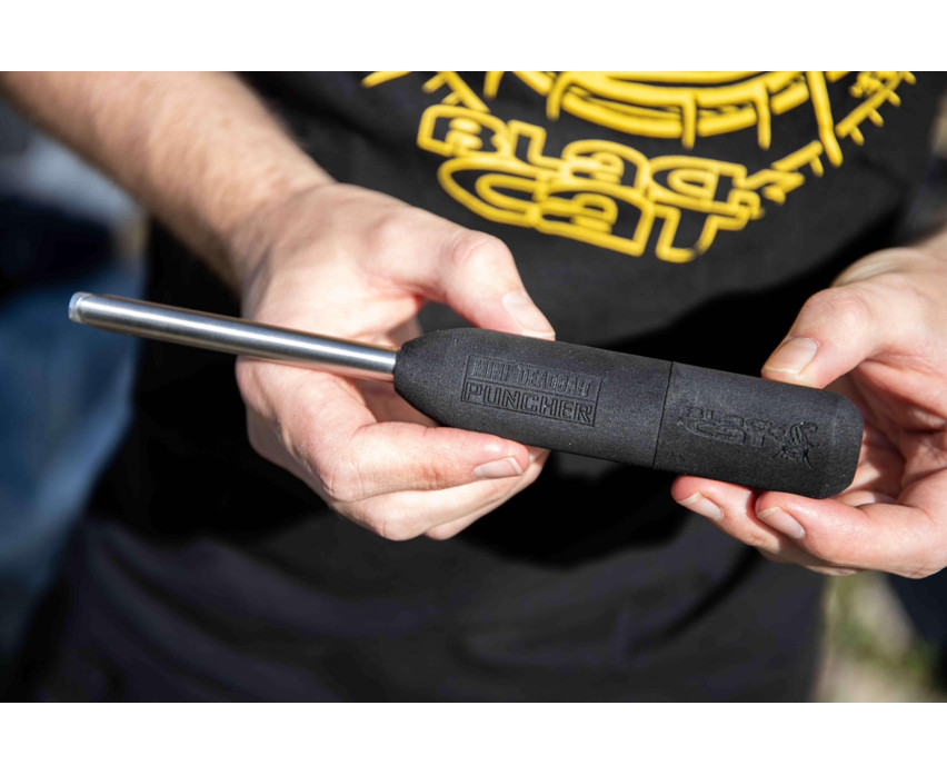 Der __Black Cat__ Mini Dead Bait Puncher ist ein präzises und langlebiges Köderfisch-Lochwerkzeug, das speziell für das Einsetzen von Schaumstoff-Pop-up-Sticks in tote Köderfische entwickelt wurde. Das 20,8 cm lange Werkzeug verfügt über ein ergonomisches Design und eine scharfe Einsteckkante, die es ermöglichen, schnell und genau eine Vertiefung im Köderfischkörper zu schaffen, ohne diesen zu beschädigen oder zu zerreißen.