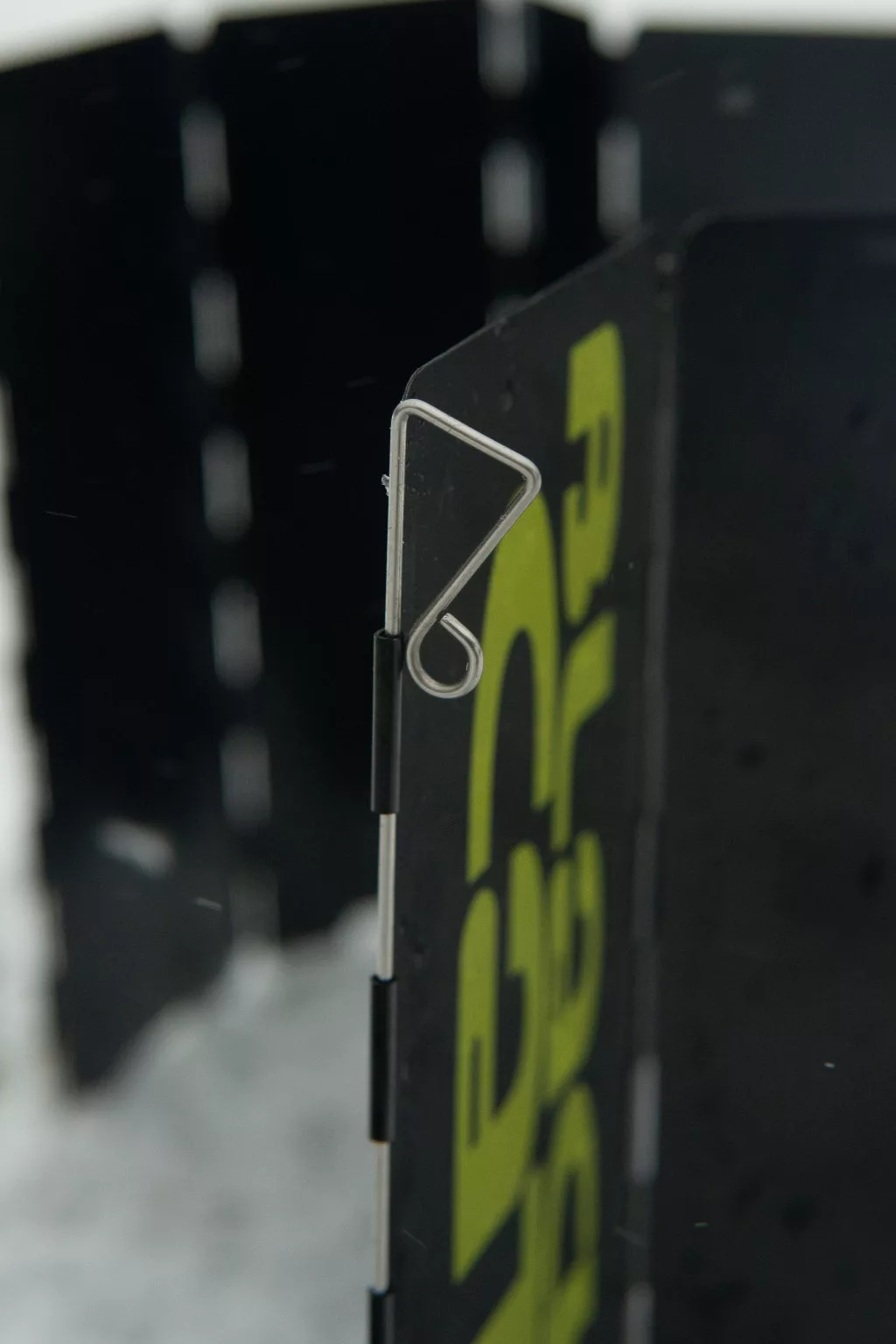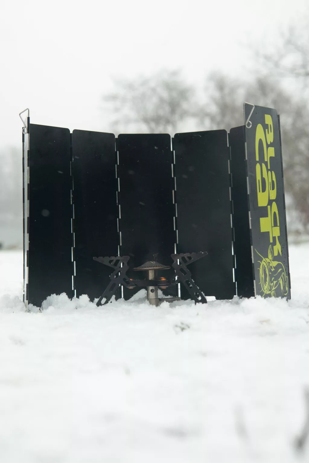 Der Black Cat Stove XL Wind Shield ist ein großer, massiver Windschutz, der speziell für das Kochen im Freien und den Schutz von Kochern entwickelt wurde. Sein Ziel ist es, die Flamme auch bei stärkerem Wind stabil zu halten, wodurch das Kochen effizienter und sicherer wird. Die Größe von 24 cm Höhe und 66 cm Breite im ausgeklappten Zustand bietet eine vollständige Abdeckung, was besonders nützlich beim Angeln ist, wenn die Essenszubereitung im Freien oft in windiger Umgebung stattfindet.