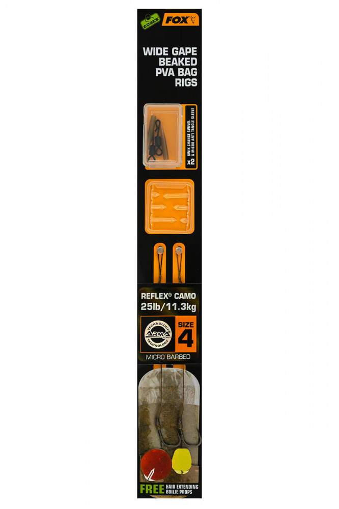 Fox EDGES™ Wide Gape Beaked PVA Bag Rigs 25lb Size 4 Brown & Green Vorgebundener Haken
