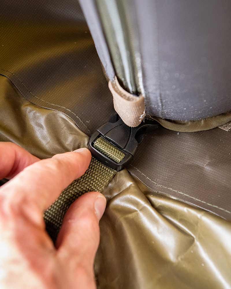 Ein Gesellschaftszelt mit einem vollständig aufblasbaren Rahmen, das so konzipiert wurde, dass es weitaus mehr Belastung standhält als herkömmliche Zelte mit Rahmen. Das schnell aufbaubare, aufblasbare Rohrsystem ermöglicht ein einfaches Aufblasen und Befestigen des Rahmens. Hergestellt aus strapazierfähigem Fox Khaki 8000mm wasserdichtem Polyestergewebe, bietet dieses Zelt optimalen Sonnen- und Hitzeschutz dank der "Black Out" Laminateinlage im Dachpanel. Vielseitig einsetzbar, mit vollständig abnehmbaren Tür- und Seitenpaneelen, mehreren Fensteroptionen und einem hinteren Eingang, der als Erweiterung für ein Zelt oder Brolly genutzt werden kann. Geliefert mit einer doppeltwirkenden Pumpe und einem intelligenten Abspannsystem, ist dieses Zelt unter allen Wetterbedingungen zuverlässig einsetzbar.