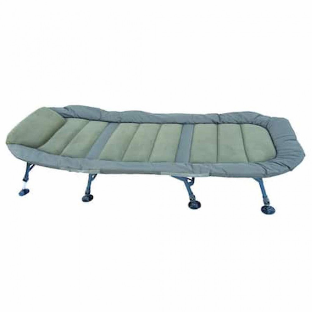 Bei mehrtägigen Angeltouren ist Komfort zweifellos ein wichtiger Aspekt. Mit der Marshal VIP Angelliege können Sie echten Komfort am Wasser erleben. Das Bett ist mit extra Verstärkungen versehen und erfüllt somit auch die Erwartungen großgewachsener Angler. Vier Paar, also insgesamt 8 ausklappbare und fixierbare Beine sorgen für die Stabilität und Belastbarkeit der Liege. Mit den einzeln verstellbaren Beinen lässt sich die Höhe der Beine leicht an die Geländebedingungen anpassen, und die großen, selbstausrichtenden Füße stehen auch auf schlammigem Untergrund stabil. Die Liegefläche aus strapazierfähigem Material ist bequem gepolstert und am Rahmen zusätzlich verstärkt, das Kopfteil ist ebenfalls separat gepolstert. All dies ist besonders wichtig, da wir so das Risiko einer Unterkühlung von unten in kalten Nächten erheblich reduzieren können.