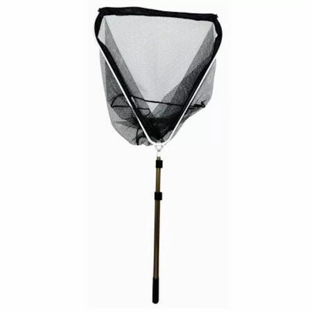 Mittelgroßer, klappbarer Kescher, konzipiert für den täglichen Angelgebrauch. Sein großer Vorteil ist, dass sein Netz gummiert ist, sodass es keine Feuchtigkeit aufnimmt, schnell trocknet und keinen unangenehmen Geruch entwickelt. Der Rahmen seines Kescherkopfs ist aus dickem, verstärktem Aluminium. Der Halsbereich ist komplett aus Metall gefertigt, für eine lange Lebensdauer konzipiert. Dreieckiger Kescherstiel, hochbelastbar, dessen Länge mit einem Schnellverschluss eingestellt werden kann. Am Ende des Stiels befindet sich ein gummierter Griff für sicheren Halt.