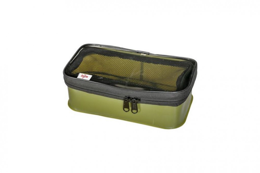 Leichte, wasserdichte Tasche aus EVA-Material, ausgestattet mit einem robusten Reißverschluss und einem transparenten Deckel. Der gut nutzbare, durchgehende Innenraum und der Deckel der Box sind durch ein ebenfalls mit Reißverschluss befestigtes Netz verbunden, das verhindert, dass die darin gelagerten Utensilien herausfallen. Dank ihrer wasserabweisenden Eigenschaften ist sie die perfekte Lösung zur Aufbewahrung wichtiger Accessoires bei Regenwetter, hat sich aber auch beim Bootsangeln als nützliches Zubehör erwiesen. Maße: 27x16x9 cm