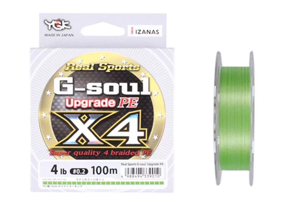 YGK G-soul X4 Upgrade PE - PE0,25(~0,083mm) 150m 4-fach geflochten, fluogrüne Farbe Geflochtene Schnur