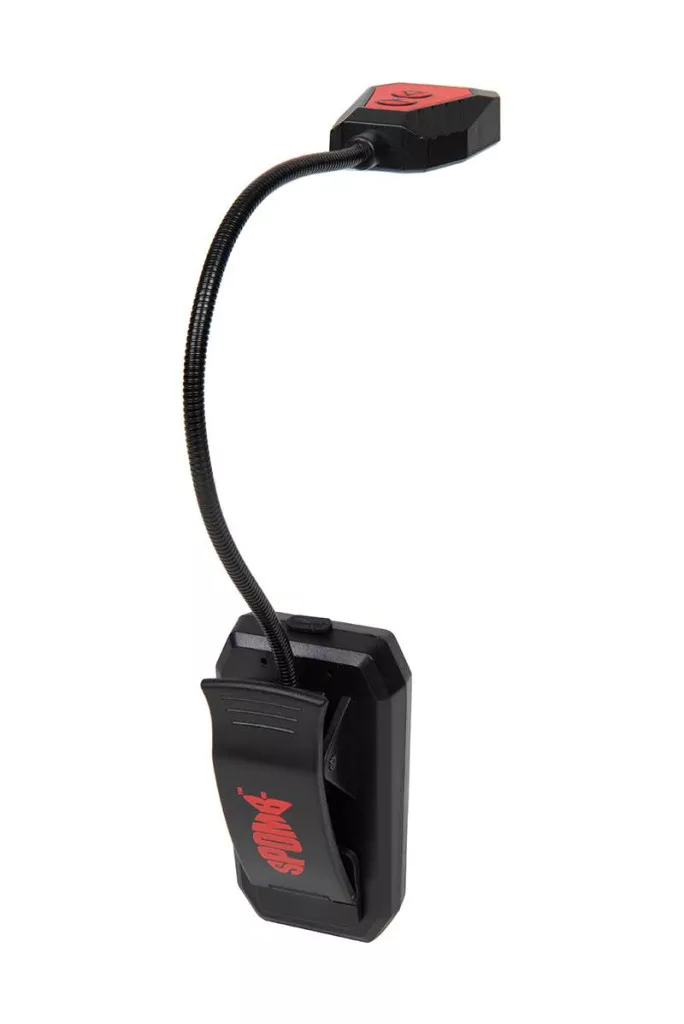 Kann an einem Eimer befestigt werden, beleuchtet das Futter und hilft sehr beim Befüllen des Spomb. Bei nächtlichem Spomb-Füttern wird keine Stirnlampe benötigt. Es unterstützt die Anpassung der Augen an das Umgebungslicht erheblich, sodass nachts der Horizont oder der gewählte Bezugspunkt besser sichtbar ist. Es verfügt über einen aufsteckbaren Arm und eine individuelle Winkeleinstellung. Kann auch als Zeltischbeleuchtung verwendet werden.