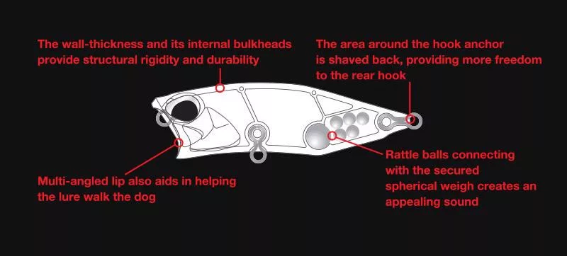 Die Klangkammern im Realis Popper 64 sind fortschrittlicher als bei anderen JDM-Poppern. Sie können den Klang gleichmäßig und aus mehreren Richtungen erzeugen, im Gegensatz zu vielen Topwater-Ködern, die die Akustik nur in einer Richtung maximieren können.