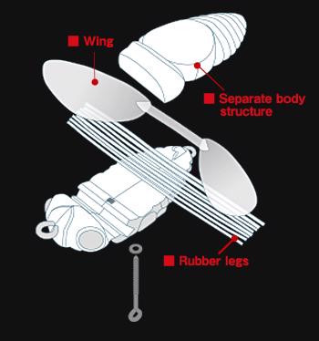 Durch die Neugestaltung der Körperdicke konnte der charakteristische Klang von Käfern, die die Wasseroberfläche berühren, erreicht werden. Da die geringere Größe die Anziehungskraft des Köders auf großer Fläche verringert, haben wir einen schüttelbaren Klangmechanismus eingebaut, der die Anziehungskraft des Köders für wählerische Fische erhöht.
