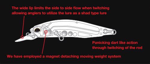 Die Bewegung des Köders gleicht der eines fliehenden kleinen Fisches, der versucht, dem Raubfisch zu entkommen, und erzeugt so eher eine "kurze, schnelle" Pulsation als ein langsames, schwaches Treiben. Diese Aktion aktiviert den Fressinstinkt der Bässe, wodurch die Fische auch bei einfachem, langsamem bis schnellem Einholen angelockt werden.