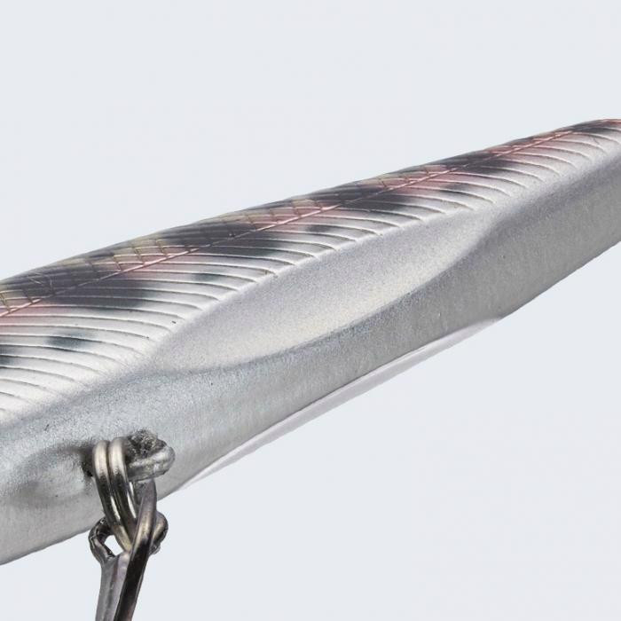 Die charakteristische, lebensechte Bewegung des Nelmezzo 50FS und die Farbvariante Silver Powder Black Back fungieren als realistischer Köder, der sofort die Aufmerksamkeit der Fische auf sich zieht.
