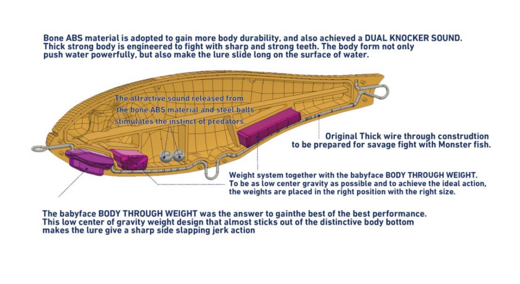 Entdecken Sie den Babyface JB150-S Wobbler, der für den erfolgreichen Fang größerer Raubfische wie Hecht, Wels, Zander und Rapfen entwickelt wurde.