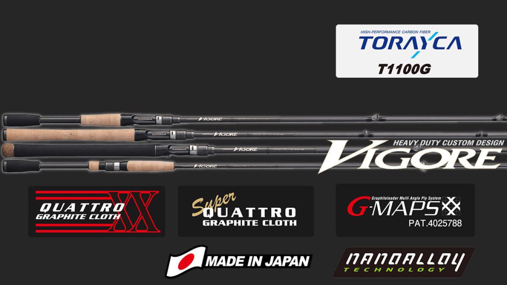 Diesmal wurde die Bigore erneuert, um den Anforderungen weitläufiger Gewässer gerecht zu werden, insbesondere hinsichtlich der Wurfweite bei der Barschsuche und langen Rutenmodellen, die auch schwer zugängliche Stellen erreichen können. Besonderes Augenmerk wurde auf die Blanks, Griffdesigns und Ringeinstellungen für jede Angelmethode gelegt, und die Funktionalität wurde auf höchstem Niveau perfektioniert. Jeder Blank wurde mit der OLYMPIC „G-MAPS Herstellungsmethode“ hergestellt. Das Hauptmaterial ist Torays „TORAYCA® T1100G“. Jedes Modell ist mit den für seinen Zweck am besten geeigneten Ringen ausgestattet. Titanrahmen-Torzite-Ringe (außer dem 77XH) dienen maximal der Wurfweite und Sensibilität.