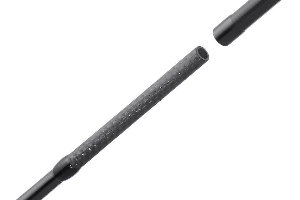Das hochmodulige Carbon erzeugt einen schlanken, leichten und dennoch straffen Blank. Der Griffbereich ist mit schräg geschnittenem, leichtem Graphitgewebe überzogen, was die Torsionssteifigkeit erheblich erhöht.