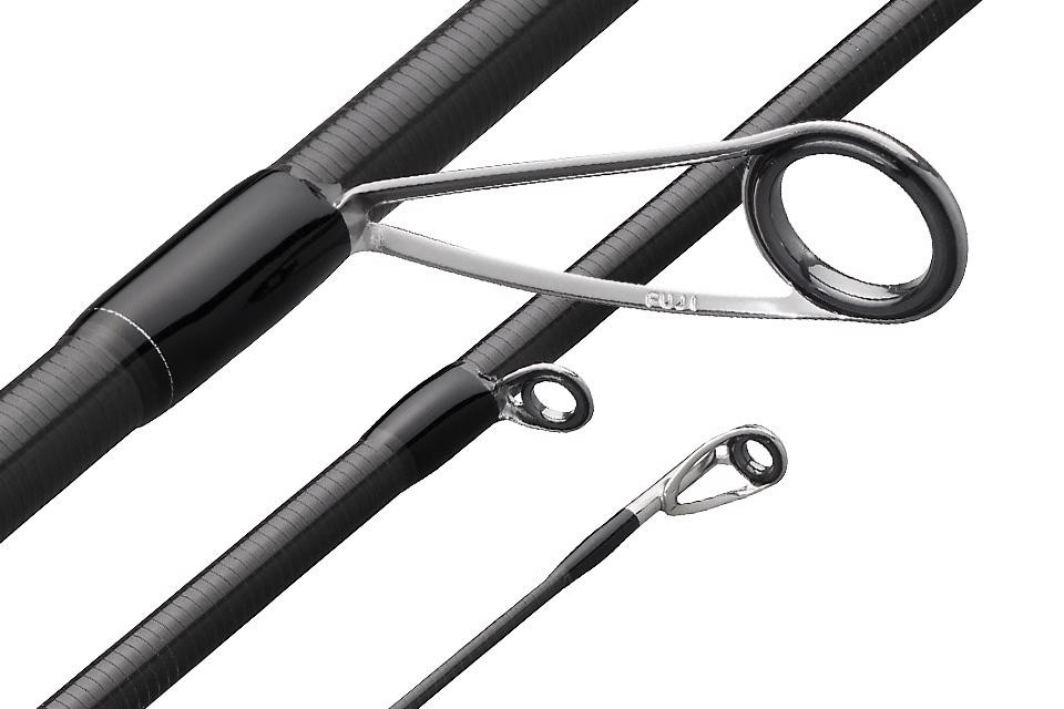 Minimiert Schnurverwicklungen mit SiC-S Ringen aus Edelstahlrahmen. Die Steckverbindung ist eine Slip-over Ferrule (umgekehrte Steckverbindung), die eine elegante, einteilige Krümmung gewährleistet. Verfügt über einen leichten und schlanken VSS-Rollenhalter mit nach unten schließendem Mechanismus. Der separate EVA-Griff sorgt für Langlebigkeit und Korrosionsbeständigkeit und verbessert die Handhabung. Das Design ohne Vordergriff ermöglicht auch hier den direkten Kontakt mit dem Blank.