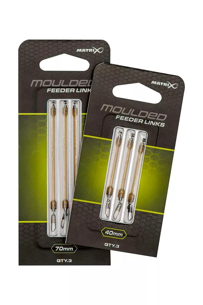 Der Matrix Moulded Feeder Link ist in 40mm Größe erhältlich, aber auch in einer längeren, 70 mm-Version, sodass Sie Ihre Wahl an die jeweiligen Angelbedingungen anpassen können. Die Packung mit 3 Stück stellt sicher, dass Sie immer Ersatz-Rigs dabei haben, falls Sie am Wasser schnell wechseln müssen.