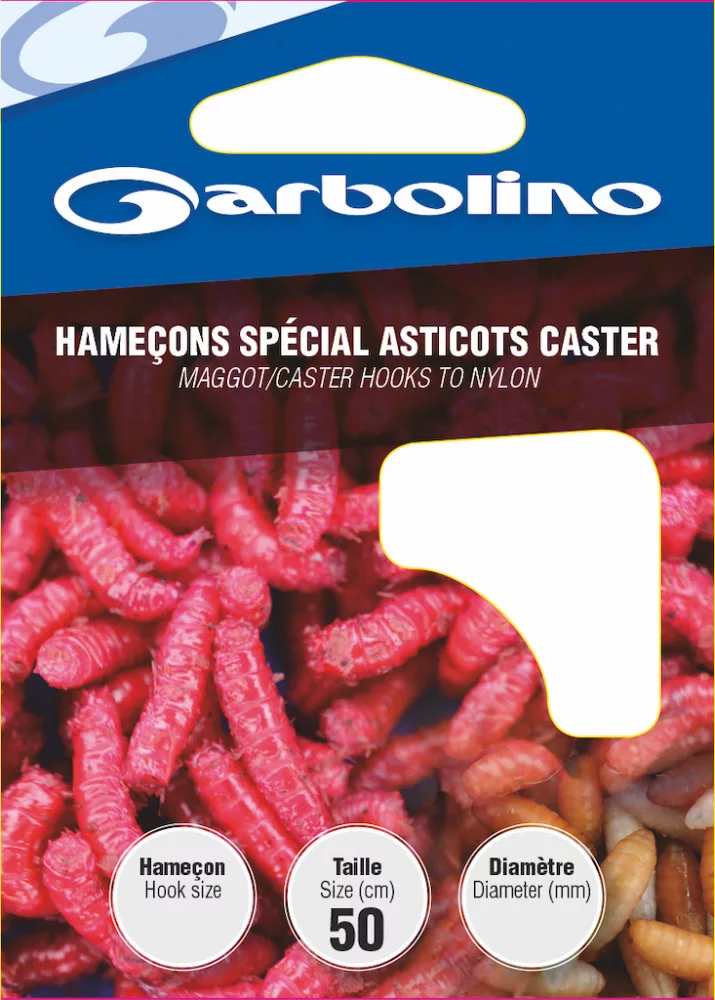 Garbolino Maden-/Caster-Haken an Nylon 12 mit Plättchen, mit Widerhaken, Monofil vorgebundener Haken 10 Stück