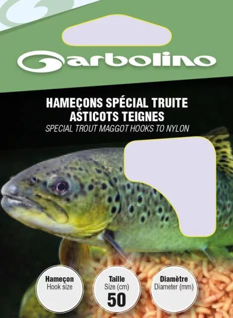 Garbolino Forellen-Madenhaken an Nylon 10 mit Plättchen, mit Widerhaken, Monofil vorgebunden, 10 Stk.