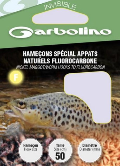 Garbolino Nickel Maden-/Wurmhaken an Fluorocarbon 10 mit Plättchen, mit Widerhaken, vorgebunden, 10 Stk.