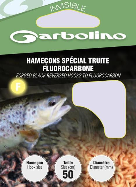 Garbolino Forged Black Reversed Haken auf Fluorocarbon Größe 10 Plättchenhaken, mit Widerhaken, Monofil vorgebundener Haken 10 Stk.