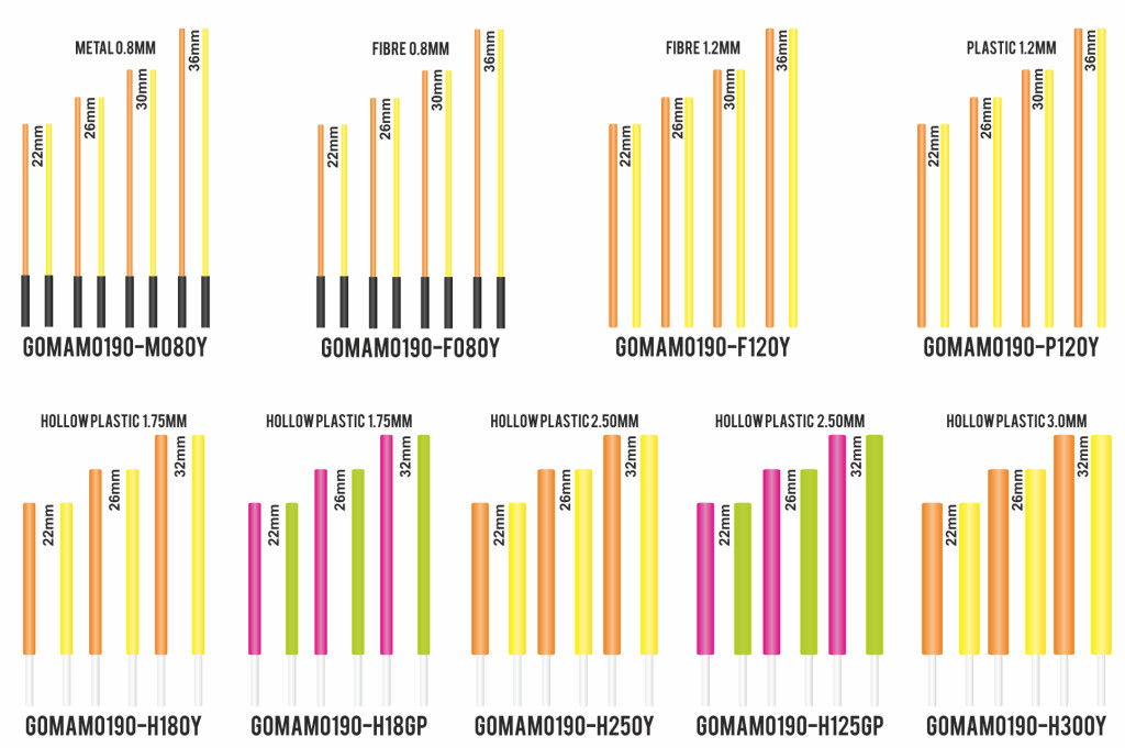 Garbolino Schwimmer Competition Series SP Hohlplastikantennen-Set 3,00mm 6 Stück - Orange und Gelb in 3 Größen