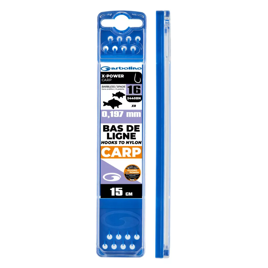Garbolino Competition Hooks To Nylon 16 Plättchen, Ohne Widerhaken X-Power Carp Monofil Vorgebundener Haken 8Stk