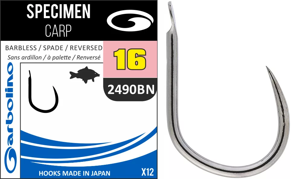 Garbolino Specimen Carp 2490BN 10 Plättchen, widerhakenloser Karpfenhaken 12 Stk.