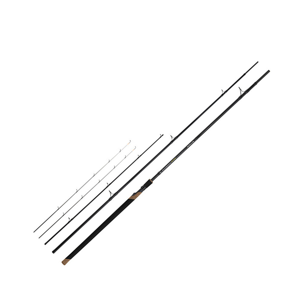 Die Rute ist mit einem starken, verstärkten Blank gefertigt, der lange Würfe und hohe Präzision garantiert. Dies ist besonders nützlich beim Distanz-Feederfischen, wenn sich das Ziel weiter entfernt befindet. Die verstärkten Abschnitte erhöhen die Stabilität der Rute zusätzlich, sodass auch die Verwendung schwererer Method-Futterkörbe kein Problem darstellt.