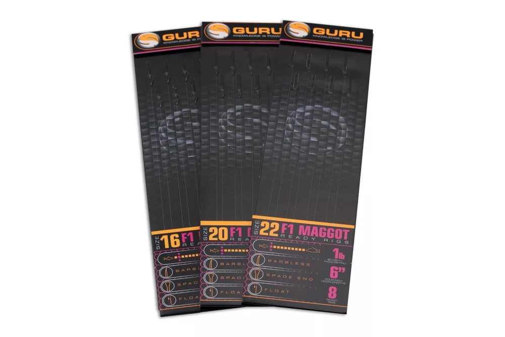 Guru F1 Maggot Hook Rig 22 Ösen, widerhakenloser, vorgebundener Monofilhaken 8 Stk.