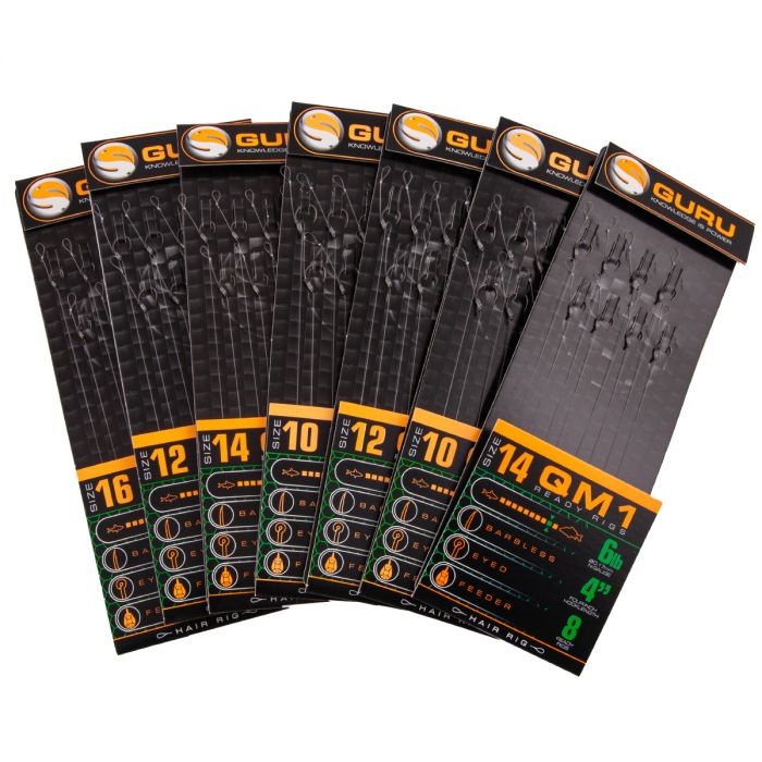 GURU QM1 STANDARD HAIR READY RIGS 4 Größen vorgebundener QM1 Haken (10 - 0.22MM)