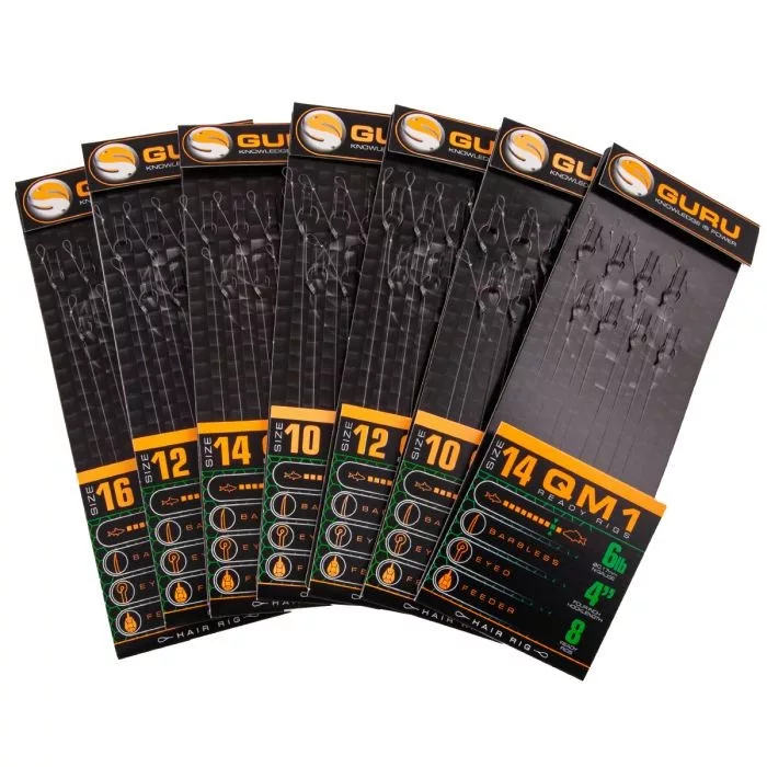 GURU QM1 STANDARD HAIR READY RIGS 4 Größe vorgebundener QM1 Haken 14 (0.19mm)