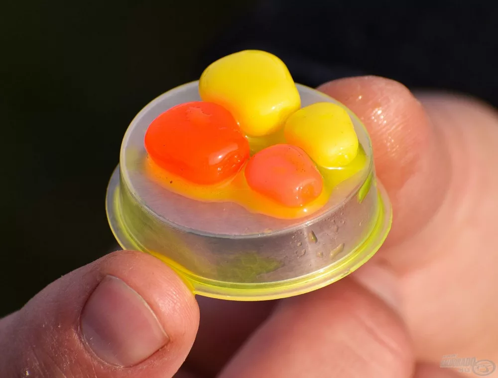 Es ist sehr wichtig, dass in jeder Variante Zitronengelb als Grundfarbe enthalten ist, ergänzt durch eine Farbe, die wir als fängig erachten. Es ist auch eine ständige Quelle der Debatte, welche Größe die richtige ist? Die kleine oder die Mega? Wir konnten uns nicht entscheiden, deshalb haben wir beide in die Gläser gefüllt. So kann die Ködergröße an die Beißlaune der Fische angepasst werden, zusammen mit der beliebigen Variation der Farben. In einem Glas befinden sich nicht 10, sondern 16 Maiskörner. Davon sind 8 Stück normale SpéciCorn und 8 Stück die vergrößerten SpéciCorn Mega.