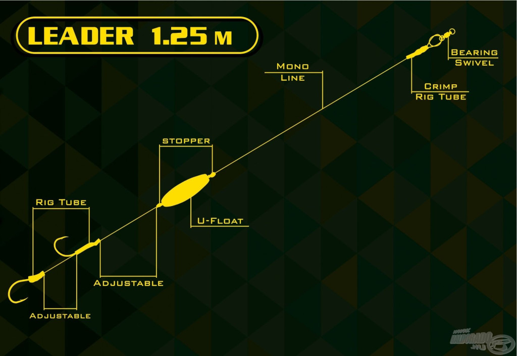 Dieses Vorfach ermöglicht eine der vielseitigsten Präsentationsmethoden. Wir können es zur Präsentation von Lebendködern oder auch Weichködern verwenden. Dank des U-Float-Schwimmers an der Montage schwebt unser Köder über dem Gewässergrund und sinkt nicht in den Schlamm ein. Für einen zusätzlichen Lockreiz kann das EVA-Material sogar aromatisiert werden. Die Gesamtlänge des Vorfachs beträgt 125 cm.