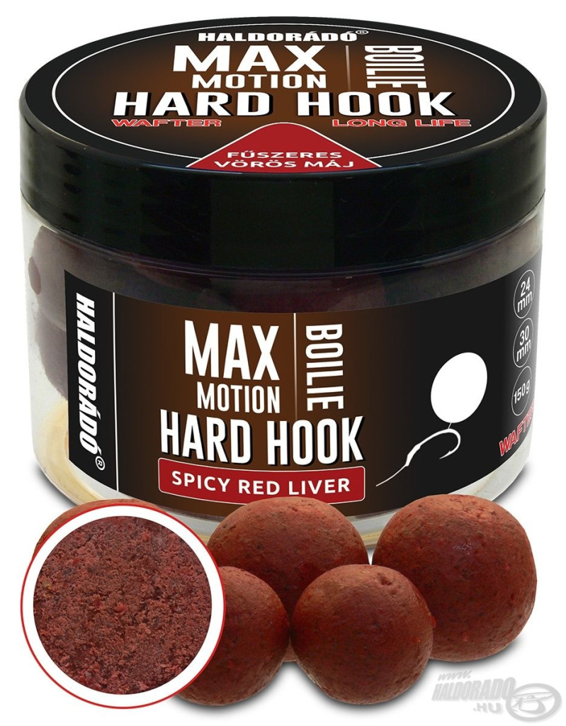 Haldorádó Max Motion Boilie Hard Hook Wafter 24, 30mm Würzig-Rote Leber Köderboilie 150gr