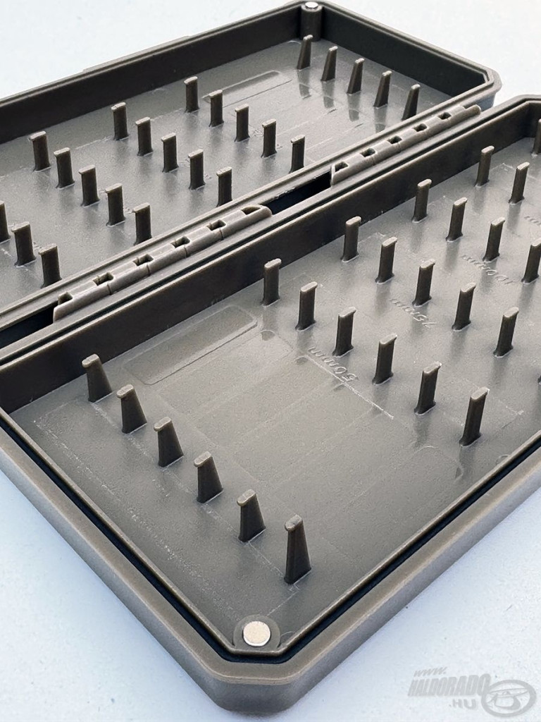 Die Box besteht aus PC + ABS-Kunststoff, einem hochwertigen, stoßfesten und wetterbeständigen Grundmaterial. Dies gewährleistet eine lange Lebensdauer auch bei intensiver Nutzung. Die Box wird mit vier starken Magneten wasserdicht verschlossen, sodass die darin aufbewahrten Vorfächer vor Feuchtigkeit, Schmutz und Rost geschützt sind – was besonders wichtig ist, wenn vorgebundene Haken darin aufbewahrt werden.
