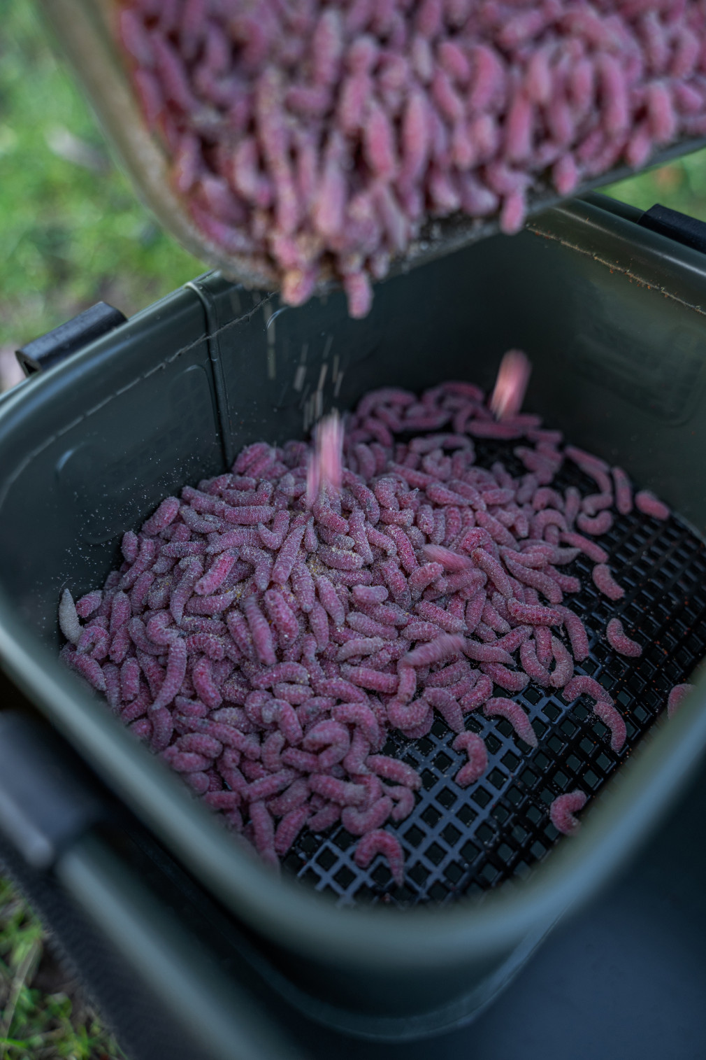 Aus 100% EVA-Material. Dieses Material ist extrem strapazierfähig und widerstandsfähig gegenüber Feuchtigkeit und Schmutz. Das EVA-Material ist leicht, aber robust, was die lange Lebensdauer und Zuverlässigkeit der Ködertasche gewährleistet. Die Tasche ist aus wasserdichtem EVA-Material gefertigt, das den Inhalt vor Regen und Feuchtigkeit schützt. Zudem ist sie leicht zu reinigen, was besonders bei der Handhabung von Futtermitteln nützlich ist. Eine der Innenschalen verfügt über ein 3 mm Netz, das das Auswerfen von Naturködern und Futtermitteln ermöglicht. Dieses Netz hilft, Feuchtigkeit abzuleiten und die Frische des Köders zu bewahren.