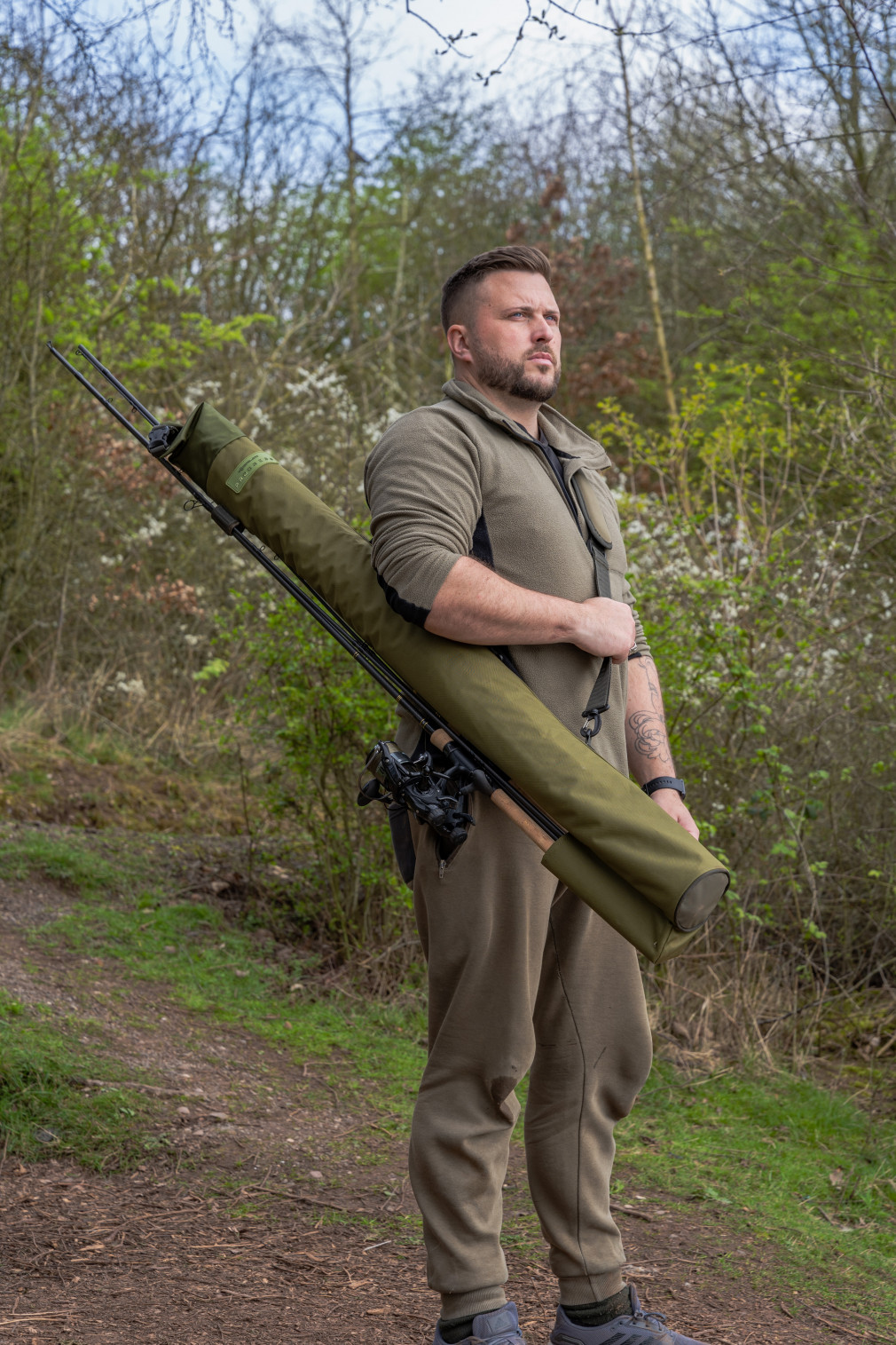 Die kompakte Größe der Rutentasche ermöglicht die bequeme Unterbringung von zwei Ruten und bietet gleichzeitig ausreichend Innenkapazität für Brollies (Schirme). Der Roll-Top-Verschluss des Hauptfachs bietet zusätzliche Sicherheit und verhindert, dass der Inhalt der Tasche nass wird oder herausfällt. Der abnehmbare und verstellbare gepolsterte Schultergurt sorgt für bequemen Transport und reduziert Belastung und Unannehmlichkeiten bei langen Spaziergängen. Größe 130x10x9cm