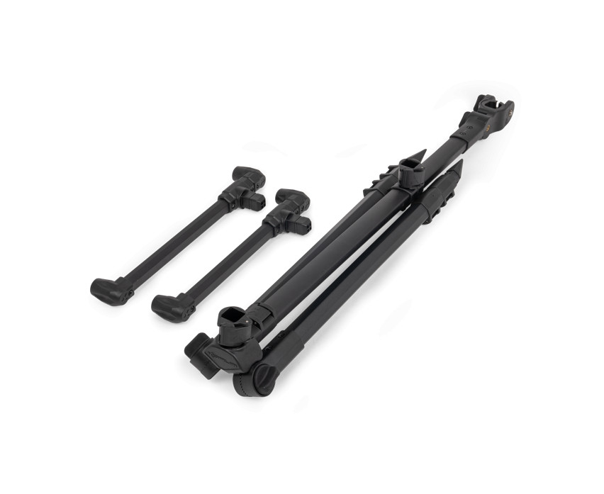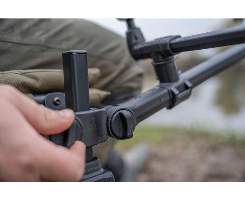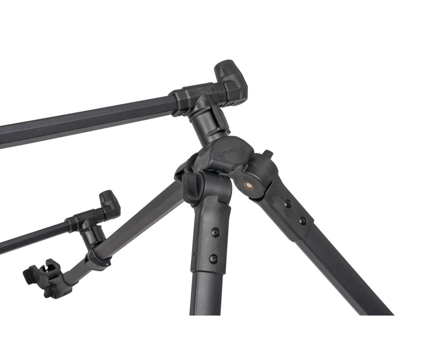 Progress Triopod Feederarm 2-Ruten-Version. Jetzt mit vorderem und hinterem Buzz Bar. Dieses superstabile Set besteht aus verdrehsicheren extrudierten Elementen, die eine völlig stabile Plattform für Ruten und Rollen bieten. Der Rahmen kann während des Gebrauchs verlängert werden, lässt sich aber dank der doppelten Cam Lock Verschlüsse einfach zusammenklappen und ist beim Transport wesentlich kompakter. Die dicken, versetzten Querträger sind unglaublich stabil und verfügen über eine hervorragende gewindelose Schnellverschlussbefestigung, sodass sie vor dem Gebrauch oder beim Verpacken nicht ein- und ausgeschraubt werden müssen. Drücken Sie einfach den Knopf des Cam Lock Verschlusses, und schon ist es fertig! Der hintere Buzz Bar kann in verschiedene Positionen des Rahmens eingestellt werden. Beide Querträger verfügen über Gewindebuchsen zur Befestigung von Rutenhaltern oder elektronischen Bissanzeigern.