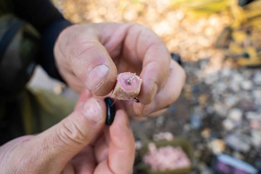 In Verbindung mit dem Korum Quickstop gibt es keine schnellere und effektivere Methode, um einen Fleischwürfel am Rig zu befestigen.