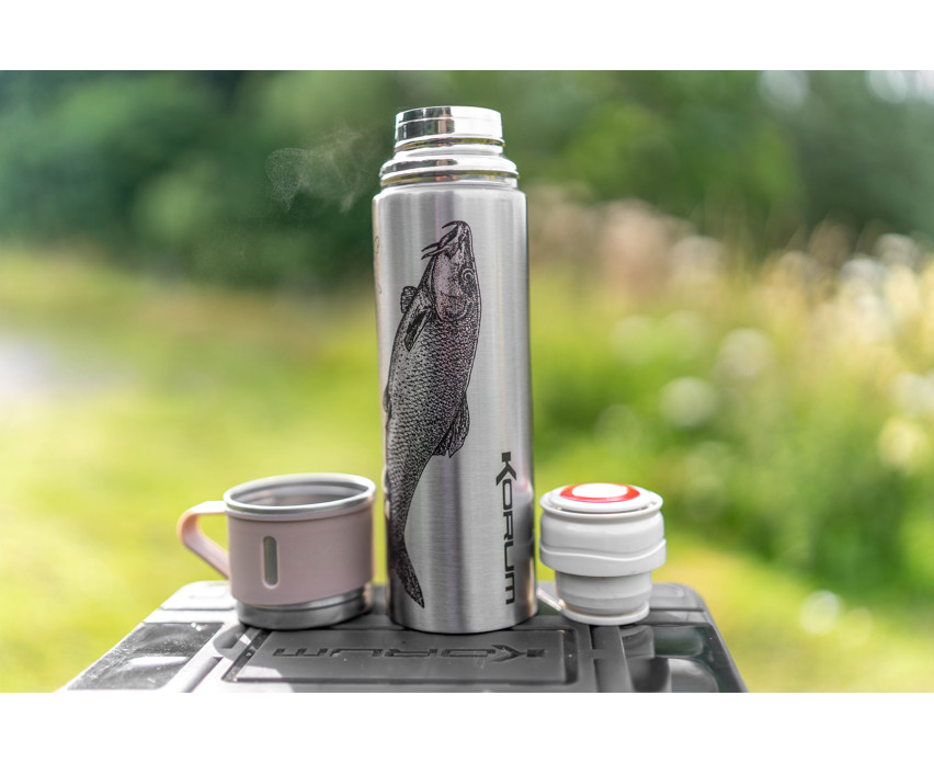 Die Korum Classic Serie steht heute für traditionelles Finesse-Angeln. Diese einzigartige 500ml Flasche ist mit der schönen Arbeit des Angelkünstlers Steve Phillips verziert. Sie hält Getränke 12 Stunden lang heiß oder kalt. Sie ist mit einem Druckknopf-Öffnungssystem ausgestattet und wird mit einem kompakten Trinkbecher geliefert.