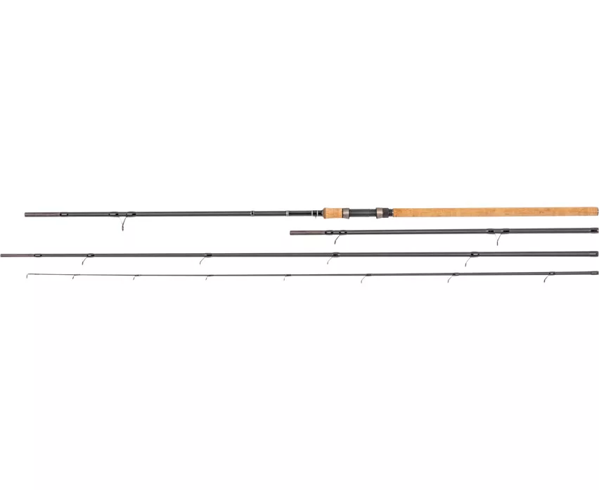 Die Besonderheit der Rute liegt in ihrer süchtig machenden Aktion: Der Griff- und Mittelteil bestehen aus parabolischem Carbon, das die Fluchten der Fische hervorragend dämpft und gleichzeitig die volle Kontrolle behält. Für die Spitzen wurde hochfestes Carbon verwendet, das eine schnelle Regeneration nach dem Wurf und eine sofortige Bissanzeige gewährleistet, sodass der Angler jederzeit zum Anhieb bereit ist. Der durchgehende Griff aus hochwertigem Kork bietet nicht nur einen bequemen Halt, sondern verleiht der Rute auch ein elegantes Aussehen.