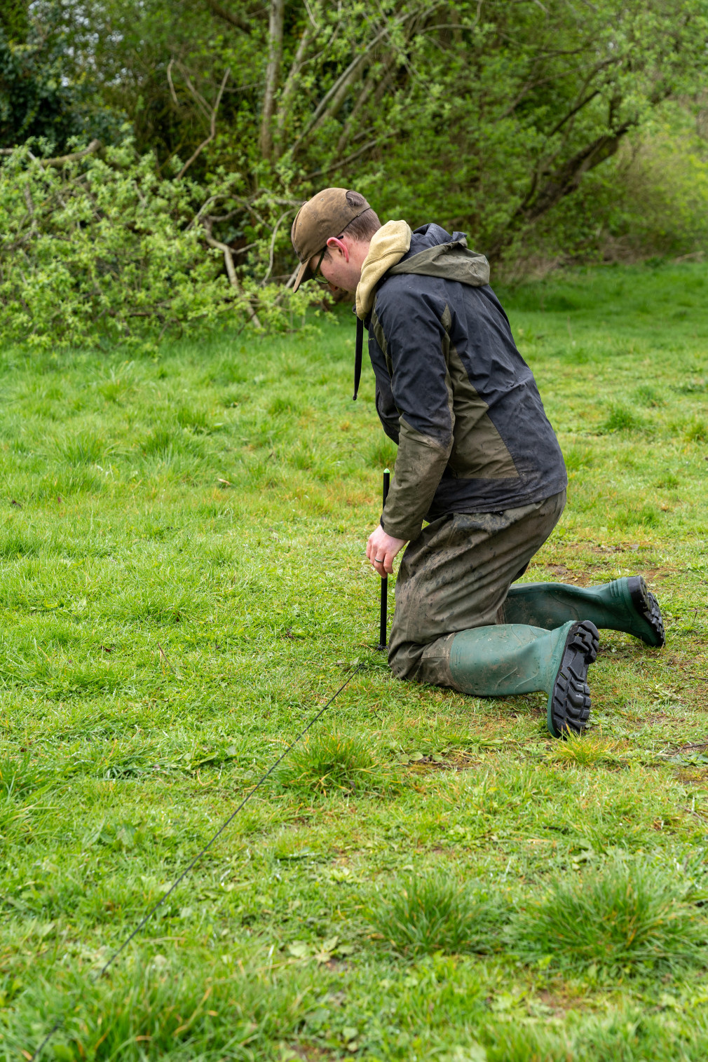 Das Set enthält ein Messkabel, mit dem die Stäbe präzise auf dem Boden platziert werden können. Mit dem Kabel können Sie die Stäbe in einem bestimmten Abstand platzieren, sodass Sie immer genau auf dieselbe Distanz werfen können.