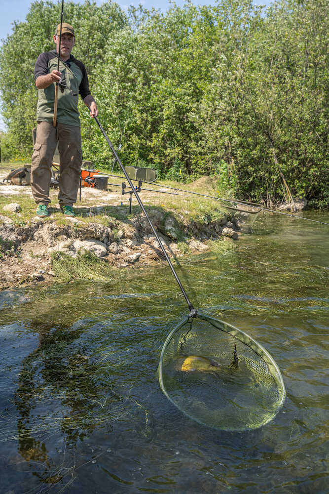 Superstarke Tele-Griffe mit sicherem Duplon-Anschluss für den Transport. Verstärkt, ausgewogen und ideal für größere Kescher.