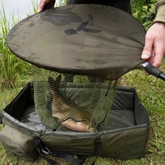 Das Korum Recovery Net Cover wurde entwickelt, um Kescherköpfe nach dem Keschern abzudecken. Es ermöglicht die kurzfristige Aufbewahrung der gefangenen Fische, so dass sie sicher sind, während wir die Fischpflegeausrüstung oder die Kamera vorbereiten. Mit verstellbarer, elastischer Zugschnur. Wird mit einem einfachen Laschenanschluss am Kescherkopf befestigt.