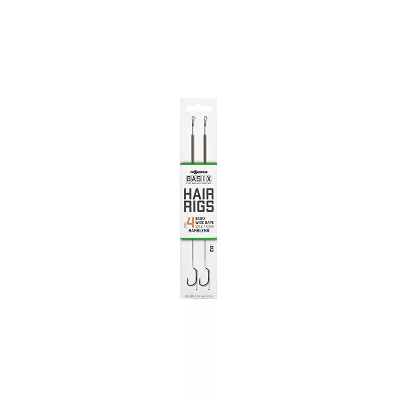 Jede Montage wird mit mehreren Hair Stoppern und Extenda Stoppern in verschiedenen Größen geliefert, die es ermöglichen, die Haarlänge zu variieren und verschiedene Ködergrößen für die Montage zu verwenden, für die sie entwickelt wurde. Am anderen Ende des BASIX Hair Rig befindet sich eine Schlaufe und ein BASIX Anti Tangle Sleeve, die eine schnelle und einfache Befestigung an dem BASIX Lead Clip Leader oder dem BASIX Lead Clip Action Pack Set (das auch QC-Wirbel enthält) ermöglichen.