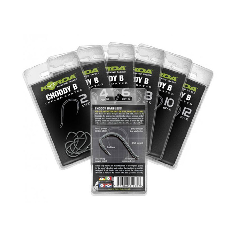 Inhalt des Pakets: 1 Packung Korda Choddy B 6 Ösenloser, widerhakenloser Haken 10 Stück