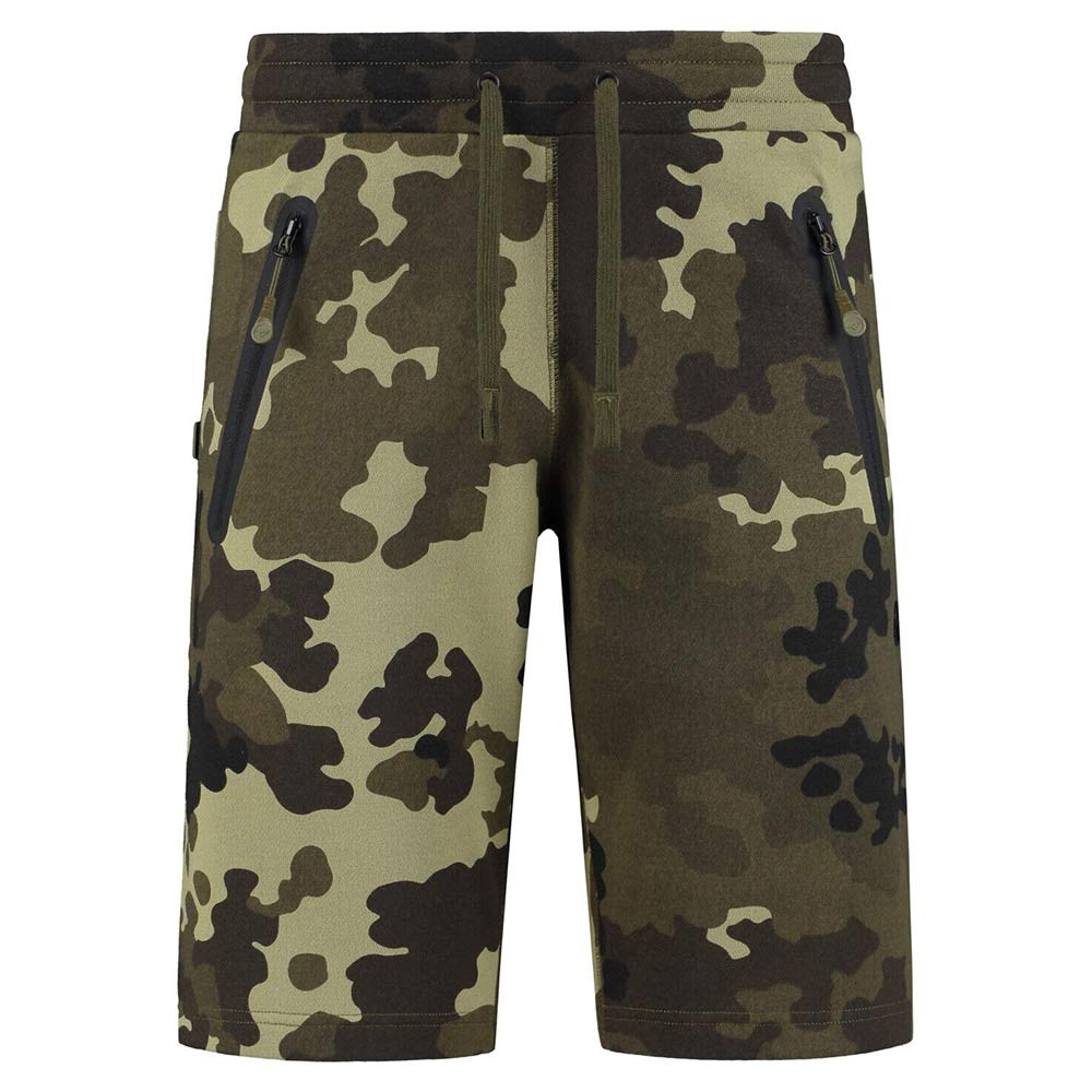 Korda Shorts mit Camouflage-Muster sind ideal zum Angeln, Wandern, für Outdoor-Aufenthalte oder für zu Hause. Hergestellt aus leichtem, aber strapazierfähigem Baumwoll-Jersey-Material. Bietet angenehmen Tragekomfort, überhitzt bei warmem Wetter nicht und lässt Sie nicht schwitzen, da Feuchtigkeit von der Haut abgeleitet wird. Passt sich der Körperform an und ist somit maximal bequem. Vordertaschen mit Reißverschluss und eine offene Gesäßtasche. Der Bund ist mit einem Kordelzug verstellbar.