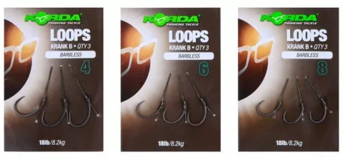 Korda Loop Rigs Größe 4 Krank Barbless 18lb - vorgebundenes Karpfenhaken-Vorfach