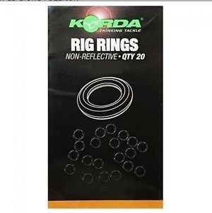 Die Korda Rig Rings Metallringe sind glanzfrei, in mattem Schwarz und in zwei Größen erhältlich. Die Stahlringe können bei der Herstellung des sogenannten D-Rigs oder auch am Hakenschenkel angebracht werden.